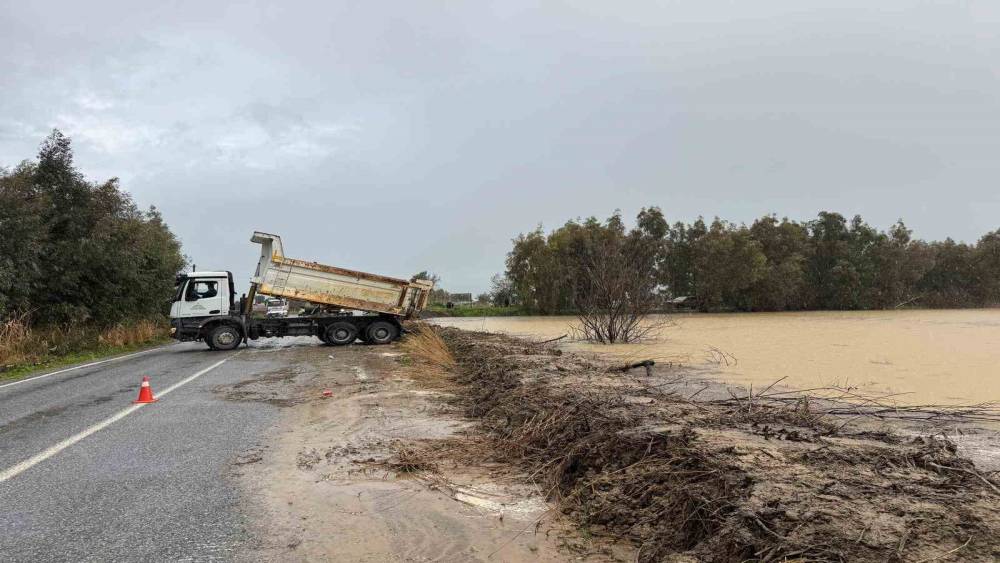 Söke’de etkili olan yağışların ardından Büyük Menderes Nehri, Söke Ovası’nda binlerce dönüm araziyi sular altında bırakırken; sabah saatlerinde Söke-Bağarası karayolu üzerinde yeniden alarm verdi.Hafta sonuna doğru debisi yükselerek yatağından taşmaya başlayan nehir, sabah saatlerinde Söke–Bağarası yolu üzerindeki köprü mevkiinde karayoluna kadar ulaştı. Taşkın riski nedeniyle yolun ulaşıma kapanma ihtimali gündeme gelirken, ilgili kurumlar hızla harekete geçti. Söke Ovası Sulama Birliği, Tarım ve orman Bakanlığı ekipleri ve Karayolları Genel Müdürlüğü ekipleri iş makineleriyle bölgeye sevk edildi. Ekipler, taşkının yola ulaşmasını engellemek amacıyla riskli noktaya toprak set oluşturdu. Yapılan hızlı ve koordineli müdahale sayesinde suyun karayolunu tamamen kaplaması önlendi. Öte yandan Jandarma’ya bağlı trafik ekipleri de bölgede güvenlik önlemi alarak sürücüleri kontrollü şekilde yönlendirdi. Alınan tedbirlerin ardından Söke–Bağarası yolunda ulaşım yeniden normale döndü.Yetkililer, bölgede su seviyesinin yakından takip edildiğini ve muhtemel yeni yağışlara karşı teyakkuz halinde olunduğunu bildirdi.