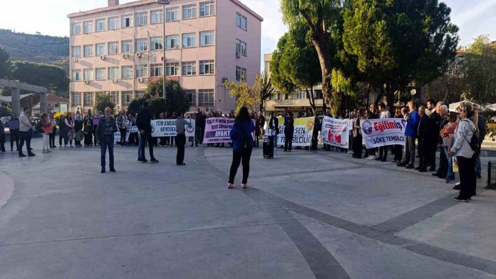 SÖKE - Söke Emek Sanat Kültür Platformu bileşeni sivil toplum örgütleri ile siyasi partilerin katılımıyla düzenlenen etkinlik, Cumhuriyet Meydanı’nda yapıldı.
