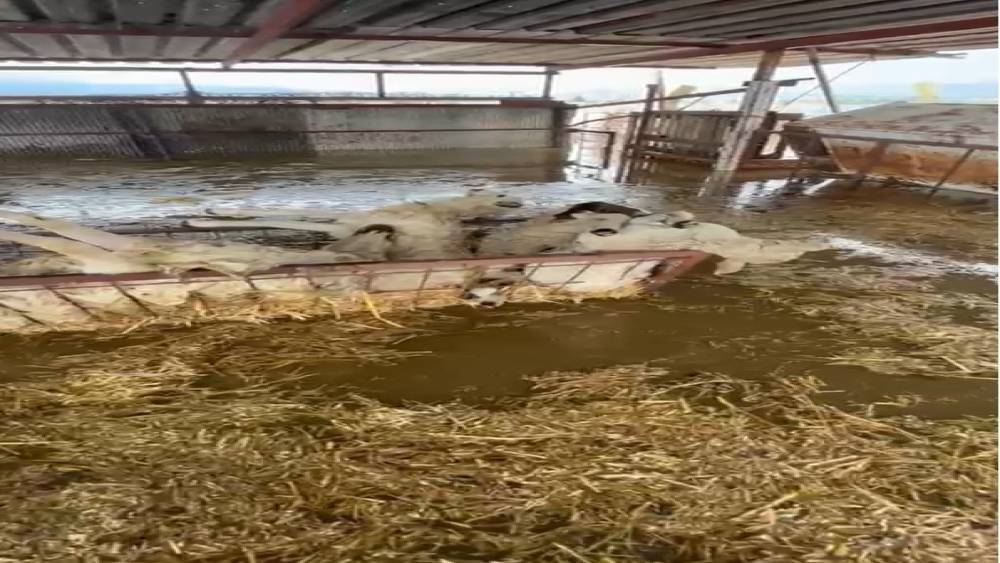 Sular altında kalan hayvan damındaki koyunlar telef oldu