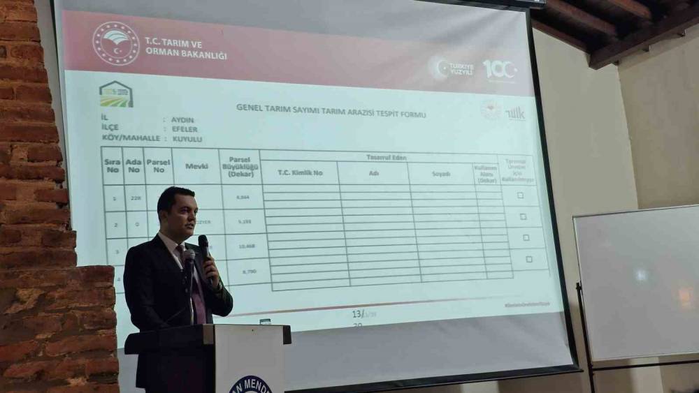 Aydın Tarım ve Orman İl Müdürlüğünden Koordinasyon ve Tarımsal Veriler Şube Müdür Vekili Mustafa Özsemerci, toplantıya katılanlara çalışmalar hakkında bilgi vererek özellikle muhtarların 24 Ekim 2025 tarihine kadar çalışmalarını tamamlamalarını istedi. Yapılan bilgilendirmede: " Tarım sayımı tarımsal üretimin temel yapısal görünümünü yerleşim yeri bazında ortaya koyan en kapsamlı veri kaynağıdır. Sayım kapsamında, çiftçilerimizin faaliyetleri doğru, eksiksiz ve güncel verilerle kayıt altına alınacak ve arazi büyüklüğünden ürün çeşitliliğine; hayvancılıktan makine parkına kadar 300 farklı değişkene ait veri toplanacaktır. Tarımsal faaliyet (bitkisel ve/veya hayvansal üretim) gerçekleştiren tüm tarımsal işletmeler (hanehalkı, hanehalkı ortaklığı, şirket, kooperatif vs.) sayım kapsamındandır ve tamamından bilgi derlenecektir. Gıda ve tarım politikalarının doğru bir şekilde planlanabilmesi ve etkinliğinin izlenebilmesi için ihtiyaç duyulan çok önemli verilerin elde edileceği bu çalışmaya Bakanlığımız ve TÜİK başta olmak üzere tüm kurumlarımız ve sivil toplum kuruluşları her türlü destek ve katkıyı seferberlik ruhu ile sağlayacaktır. Çiftçilerimizin sayıma katılımı farklı tanıtım kanallarıyla teşvik edilecektir. Çiftçilerin sayım bürolarına davet edilmesi, bir takvim dâhilinde SMS yoluyla TÜİK tarafından organize edilecektir. Ayrıca çiftçilerimiz web üzerinden e-devlet doğrulamasıyla soru formunu kendi başlarına, büroya gelmeden doldurabilecektir. Çiftçilerimizin anket öncesinde, tasarruflarında bulunan ( tarım + tarım dışı) tüm alanların ada, parsel numarası, büyüklüğü, sahibi ya da ortağı olduğunuz traktör ve biçerdöverin plakaları, hayvan varlığınız vb. bilgileri yanında bulundurması önem arz etmektedir. Dökümü alınan listeler İlçe Sayım Komitesi Başkanlıkları tarafından ilgili mahalle/köy muhtarlarına teslim edilecektir. Muhtarlar tarafından, kendilerine teslim edilen formlardaki araziler ile ilgili tespit çalışması ivedilikle gerçekleştirilecek, listelerdeki yer alan arazilerin tarımsal niteliğinin olup olmadığı, tarımsal niteliği olan alanların kullanılıp kullanılmadığı, kullanılan alanların hangi tarımsal işletmeler tarafından tasarruf edildiği bilgileri formlara işlenecektir. Tamamlanan formlar, muhtarlar tarafından imzalanarak Tarım ve Orman İl/İlçe Müdürlüklerine teslim edilecektir" denildi.