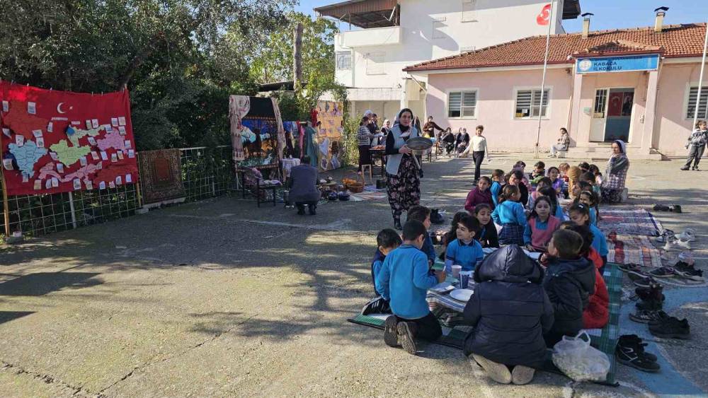 SULTANHİSAR - Aydın Sultanhisar ilçesindeki Kabaca İlkokulu, ‘Tutum Yatırım ve Yerli Malı Haftası’nda ‘Köklerden Geleceğe’ sloganıyla yerli ürünlerin ön plana çıkartılarak uygulamalı şekilde tanıtıldığı etkinlik düzenledi. Okul bahçesinin adeta yaşayan bir kültür, sanat ve yöresel lezzet panayırına dönüştürüldüğü etkinliğe Sultanhisar Belediye Başkanı Osman Yıldırımkaya, İlçe Milli Eğitim Şube Müdürleri Burcu Tanrıverdi Yılmaz ve İsmail Yılmazer, İlçe Müftüsü Yakup Şener, okul yöneticileri, ilçe milli eğitim müdürlüğü personeli, veliler ve öğrenciler katıldı. Çocuklar misafirlerine şiirler, şarkılar ve tekerlemeler söyleyerek kutlamaların odağı oldu.