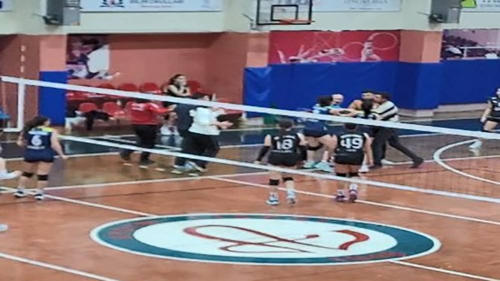 Aydın’da Küçük Kızlar Final Grubu’nda oynanan voleybol karşılaşması, sahaya giren taraftar nedeniyle seyircisiz olarak tamamlanırken, küçük sporcular yaşananları korku dolu gözler ile izledi.