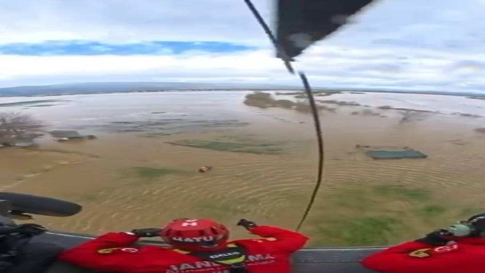 Aydın’ın Koçarlı ilçesinde Menderes Nehri’nin taşması sonucu birçok arazi sular altında kalırken, suların ortasında mahsur kalan vatandaşın helikopter ile kurtarılma anı jandarma kamerasına anbean yansıdı.