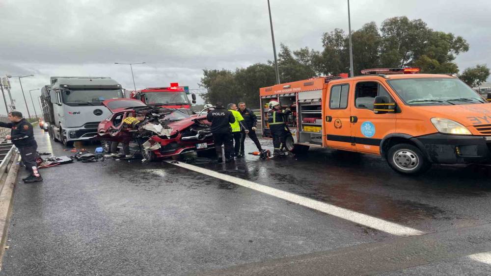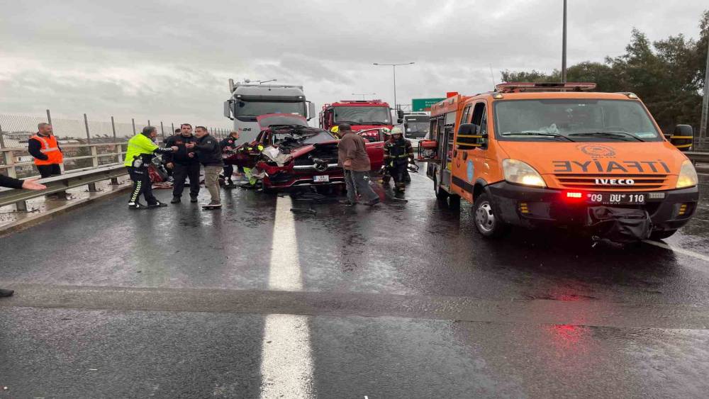Kaza, Aydın-İzmir Karayolu Ali İhsan Paşa Köprüsü üzerinde meydana geldi. Edinilen bilgiye göre, yağış nedeniyle kayganlaşan yolda D.Ö. idaresindeki tırın 15 KD 504 plakalı dorsesine M.A. idaresindeki AA 37 OV plakalı Mercedes marka otomobil arkadan çarptı. Çarpmanın etkisiyle dorsenin altına giren otomobil hurdaya dönerken kazada araç içerisindeki 2 kişi yaralandı. İhbar üzerine bölgeye polis, itfaiye ve sağlık ekipleri sevk edildi. Kısa sürede olay yerine gelen itfaiye ekipleri, araçta sıkışan kadın yolcuyu kurtararak sağlık ekiplerine teslim etti. Yaralılar ilk müdahalelerinin ardından ADÜ Araştırma ve Uygulama Hastanesi’ne kaldırıldı. Yaralıların hayati tehlikelerinin bulunmadığı öğrenilirken kazayla ilgili inceleme başlatıldı.