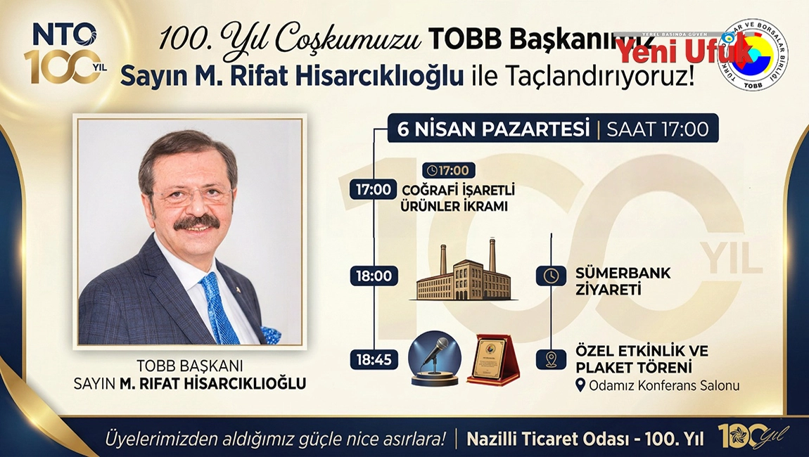 Nazilli Ticaret Odası Başkanı Nuri Arslan, “100. Yıl Coşkumuzu TOBB Başkanımız Sayın M. Rifat Hisarcıklıoğlu ile Taçlandırıyoruz” dedi.