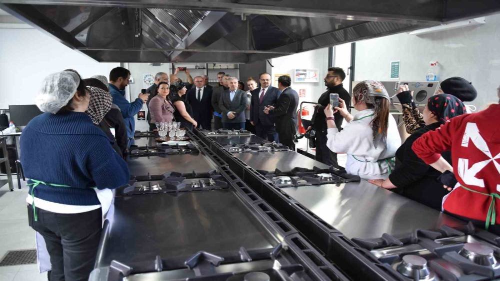 DİDİM - Didim gibi gelecek vadeden bir şehirde Didim Mutfak Akademisi önemli bir ihtiyacı karşılayacak Didim Mutfak Akademisini ilçedeki ziyaret programına dahil ederek yerinde görmek istediği dile getiren Vali Canbolat, projenin ferah bir alanda ve modern bir bina ve ekipmanla hayata geçmesinden dolayı memnuniyetini ifade etti. Başta proje sahibi Didim Ticaret Odası olmak üzere emeği geçen herkese teşekkür etti. Çalışmanın meslek edindirme açısından kıymetli olduğunu söyleyen Canbolat, Didim gibi gelecek vadeden bir şehirde önemli bir ihtiyacı karşılayacağını sözlerini ekledi. İşe ihtiyacı olan kadınların aşçılık ve pastacılık eğitim aldığı projede İlk kursiyerlerin işe başladığı bilgisini alan Canbolat eğitmen ve kursiyerleri tebrik etti.