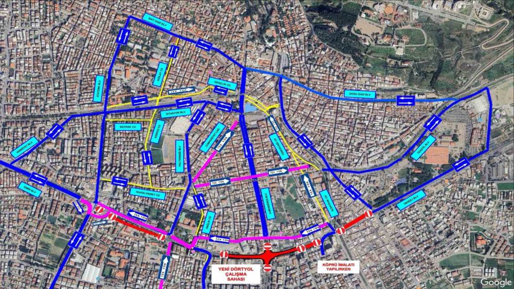 Aydın Büyükşehir Belediye Başkanı Özlem Çerçioğlu’nun söz verdiği, Aydın’a kazandırılacak olan Yeni Dörtyol Köprülü Kavşağı projesinde yapım çalışmaları başlıyor.Çalışmalar kapsamında 27 Şubat Cuma günü saat 23.00 itibariyle Yeni Dörtyol Kavşağı ve bağlantı yollarında trafik akışı geçici olarak durdurulacak. Büyükşehir Belediyesi ekipleri, çalışmaların planlanan takvim doğrultusunda ve en kısa sürede tamamlanması için sahada yoğun mesai yürütecek. Sürücülerin mağduriyet yaşamaması adına alternatif güzergahlar belirlendi.Doğu - Batı / Batı - Doğu Yönleri, Denizli yönünden İzmir yönüne gitmek isteyenler:Astim Kavşağı (Denizli Aydın Yolu) - Havaalanı Bulvarı - Afrodisyas Bulvarı - Çevre Bulvarı - Çine Caddesi ya da Atatürk Bulvarı - İzmir Bulvarı’nı kullanacak. İzmir yönünden Denizli yönüne gitmek isteyenler, İzmir Bulvarı - Atatürk Bulvarı - Çevre Bulvarı - Afrodisyas Bulvarı - Havaalanı Bulvarı - Astim Kavşağı (Denizli Aydın Yolu) kullanacak. Güney - Doğu/ Doğu - Güney / Güney - Batı / Batı - Güney Yönleri, Muğla yönünden Denizli yönüne gitmek isteyenler: Muğla Bulvarı - Çevre Bulvarı - Afrodisyas Bulvarı - Havaalanı Bulvarı - Astim Kavşağı (Denizli Aydın Yolu) kullanacak. Denizli yönünden Muğla yönüne gitmek isteyenler, Astim Kavşağı (Denizli Aydın Yolu) - Havaalanı Bulvarı - Afrodisyas Bulvarı - Çevre Bulvarı - Muğla Bulvarı kullanacak. Muğla yönünden İzmir yönüne gitmek isteyenler, Muğla Bulvarı - Çevre Bulvarı ya da Batı Aydın Bulvarı - Çine Caddesi ya da Atatürk Bulvarı - İzmir Bulvarı’nı kullanacak. İzmir yönünden Muğla yönüne gitmek isteyenler, İzmir Bulvarı - Atatürk Bulvarı - Çevre Bulvarı - Muğla Bulvarı’nı kullanacak. Güney - Kuzey / Kuzey - Güney Yönleri, Kuzey yönünden İzmir ve Denizli bulvarlarının güneyine geçmek isteyenler: Adnan Menderes Bulvarı’nın Süleyman Seba Caddesi ile Albay Şefik Caddesi kesişiminden itibaren kapalı olması nedeniyle Atatürk Bulvarı, Sağlık Caddesi, Egemenlik Bulvarı ve Sanayi Caddesi güzergahlarını kullanabilecekler. Güney yönünden İzmir ve Denizli bulvarlarının kuzeyine geçmek isteyenler: Yeni Dörtyol Kavşağı ile İmam Hatip Kavşağı arası kapalı olacağından Tepecik Bulvarı, Egemenlik Bulvarı, 522 Sokak, Mehmet Akif Caddesi, Çine Caddesi ve Atatürk Bulvarı güzergahlarını kullanabilecekler.