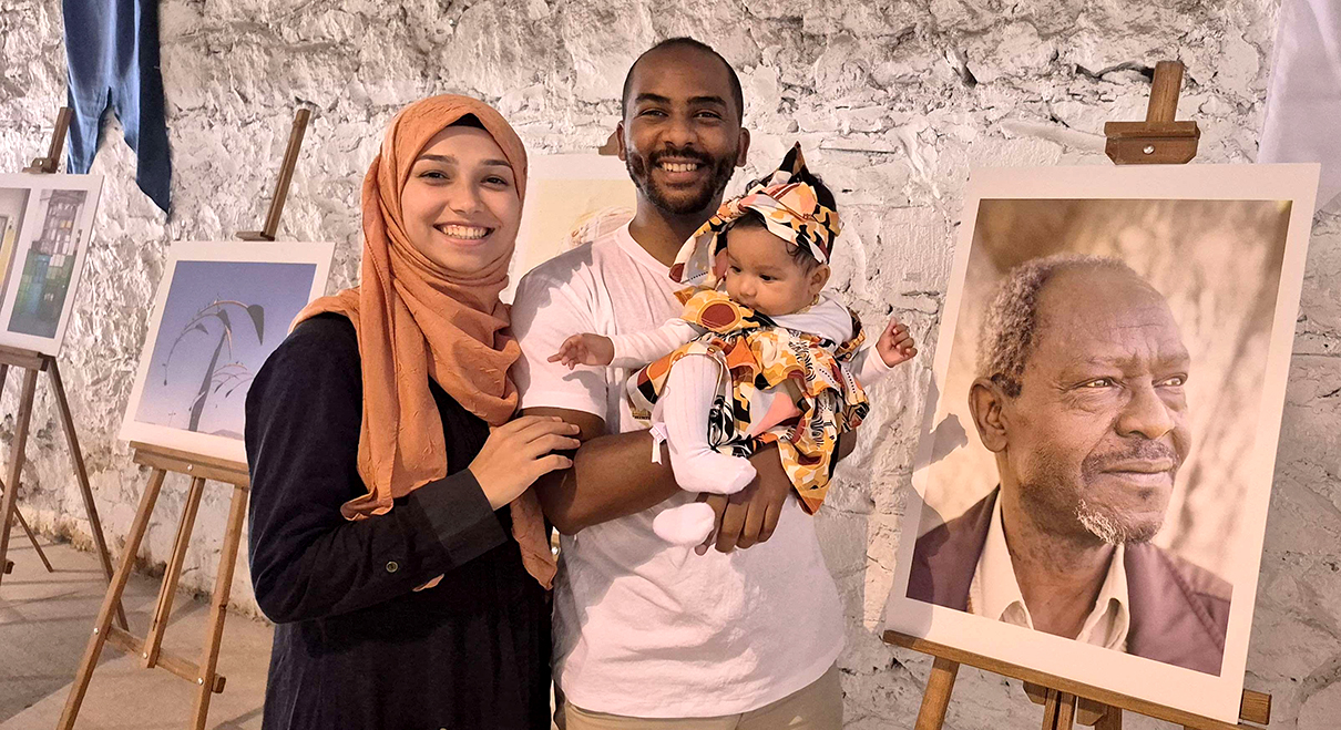 Resim; İzmir Bıçakçı Han’da düzenlenen bir etkinlikten. (2025) Solda Eşim Mine, ben Ahmet Salih, kızım Nil Meva ve şövale de babam Nurullah Beyin resmi görülmekte.