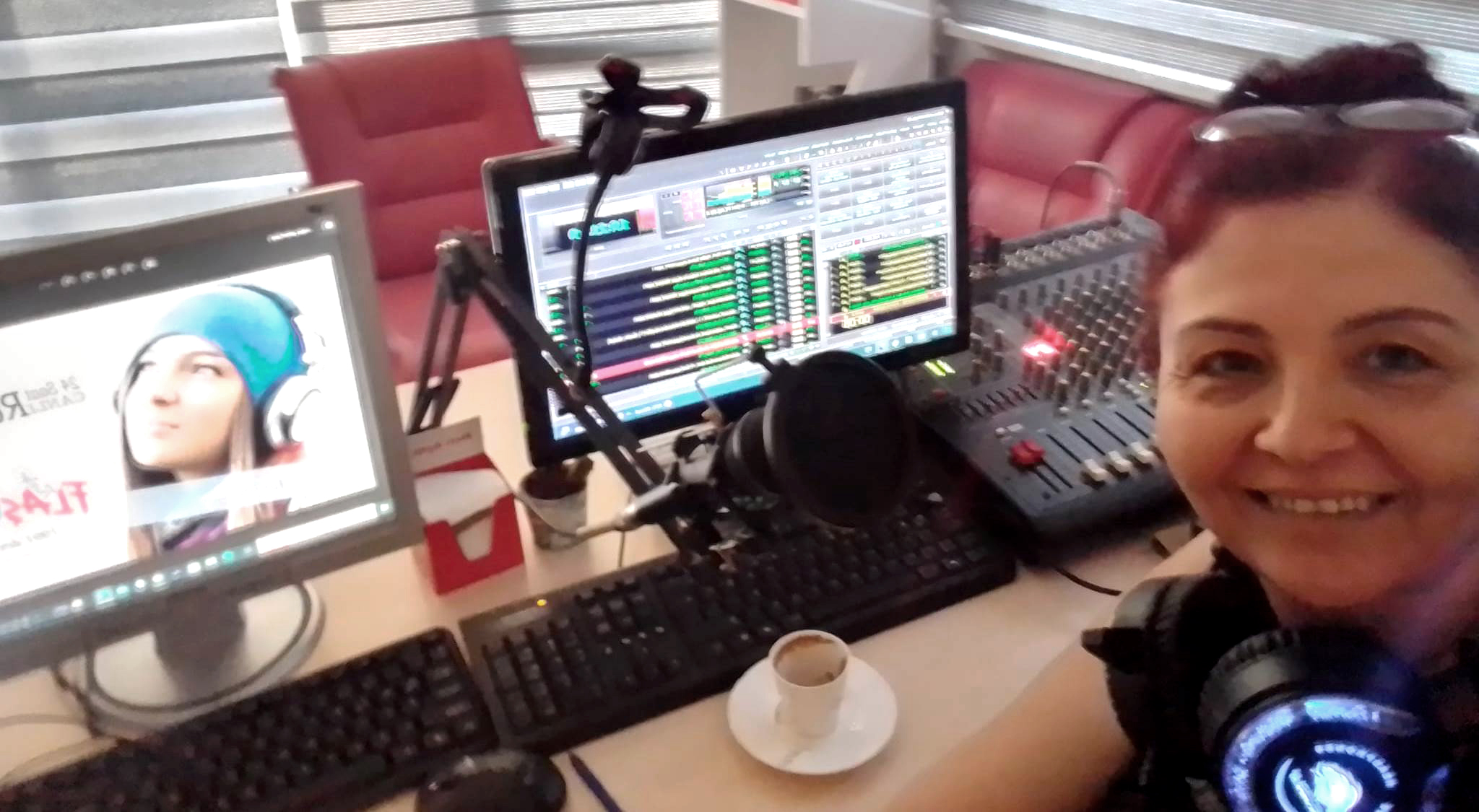 Solda Radyo Flaş’ta görev başında çalışırken.