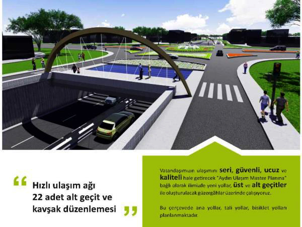 O gün açıklanan projelerden birisi de “Hızlı ulaşım ağı, 22 adet alt geçit ve kavşak projesi” idi. Bu projeyi duyunca çok sevinmiştik. Buharkent’ten Didim ilçesine kadar olan ulaşım ağı üzerinde yirmiden fazla alt geçit ve kavşak düzenlemesi ile trafik rahatlayacak, trafik lambalarında bekleme son bulacak hem zamandan hem de yakıttan tasarruf edecektik. Özellikle Nazilli geçişi, Efeler geçişi ve Söke geçişi kolaylaşacaktı.